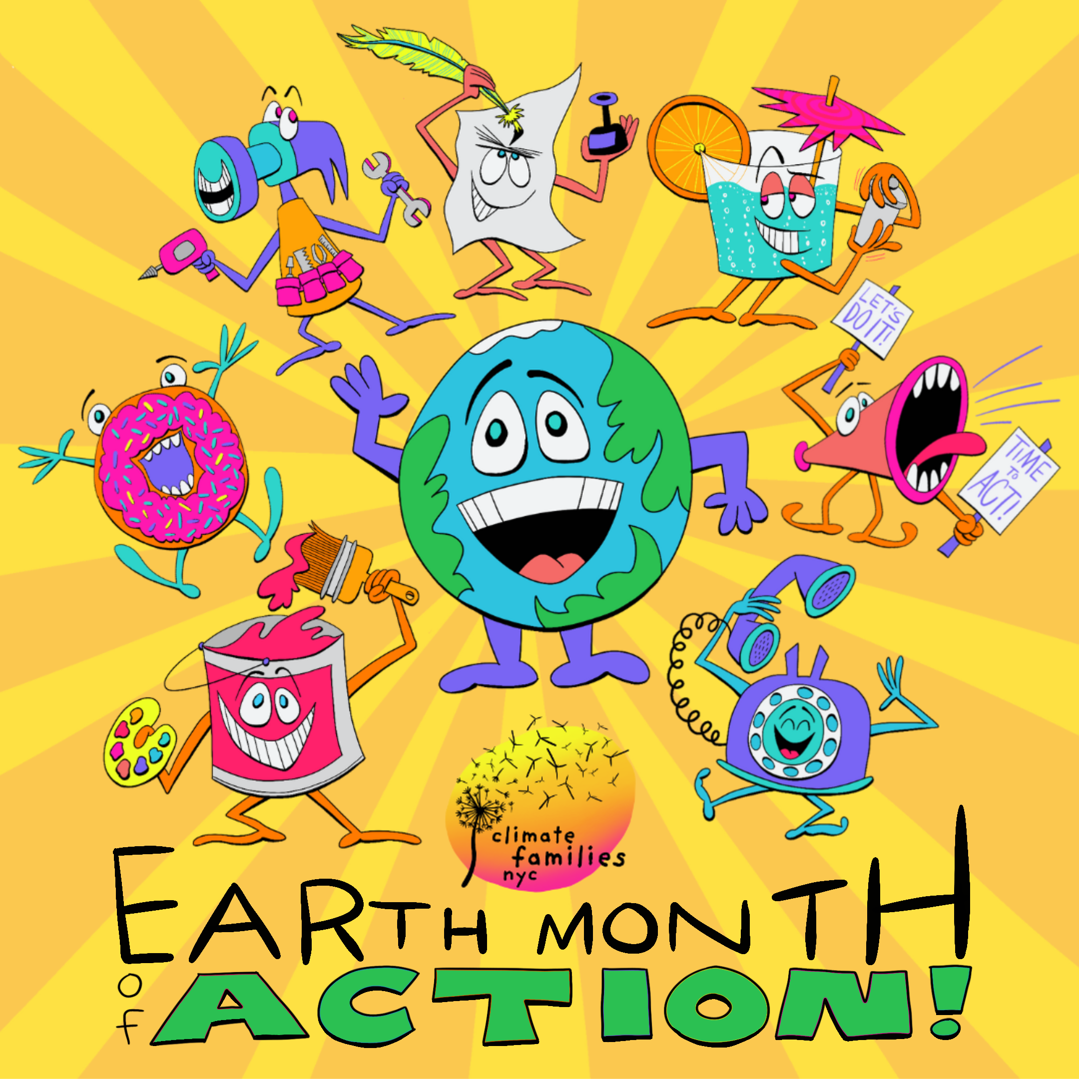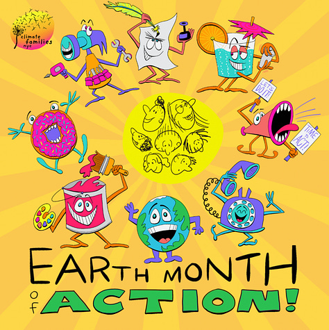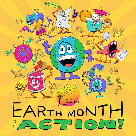 After the previous flyer I drew for Climate Families NYC, the activist organization I’ve begun working with, they asked if I’d be up for discussing the visual campaign elements of their upcoming Earth Month of Service. The event comprises several weeks of activities for both families (art playdates, a youth climate strike) and grown-ups (call relays, a happy hour).