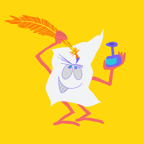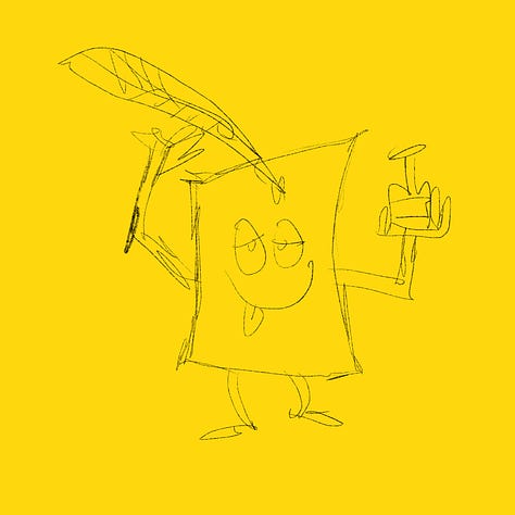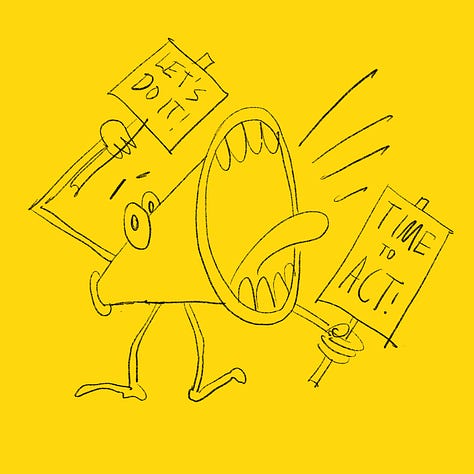 While drawing, I started to feel that superhero imagery is a bit played out and wondered if it would be possible to take a more direct approach to connecting the characters with the events. I landed on a series of anthropomorphized figures that could serve as kid-friendly mascots - a hammer for a climate action toolkit, a piece of paper with a quill for the letter-writing campaign.