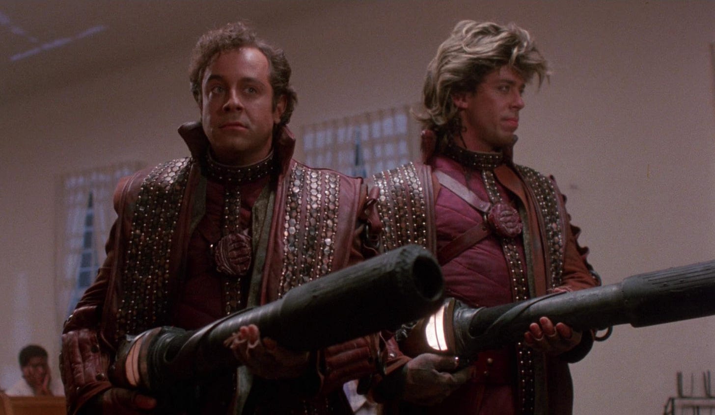 The critters in Critters are absolutely critters, no doubt about it (though their species name is the much lamer “crites”). The title was chosen to be cutely dismissive, which creates a stronger contrast with its subjects’ bloodthirsty ruthlessness. The film opens with a small group of them escaping from a prison asteroid and commandeering a spacecraft that will inevitably bring them to earth. They’re considered so dangerous that a couple of Terminator-adjacent bounty hunters with laser bazookas are hired to catch and kill them before they wreak more havoc on helpless planets.
