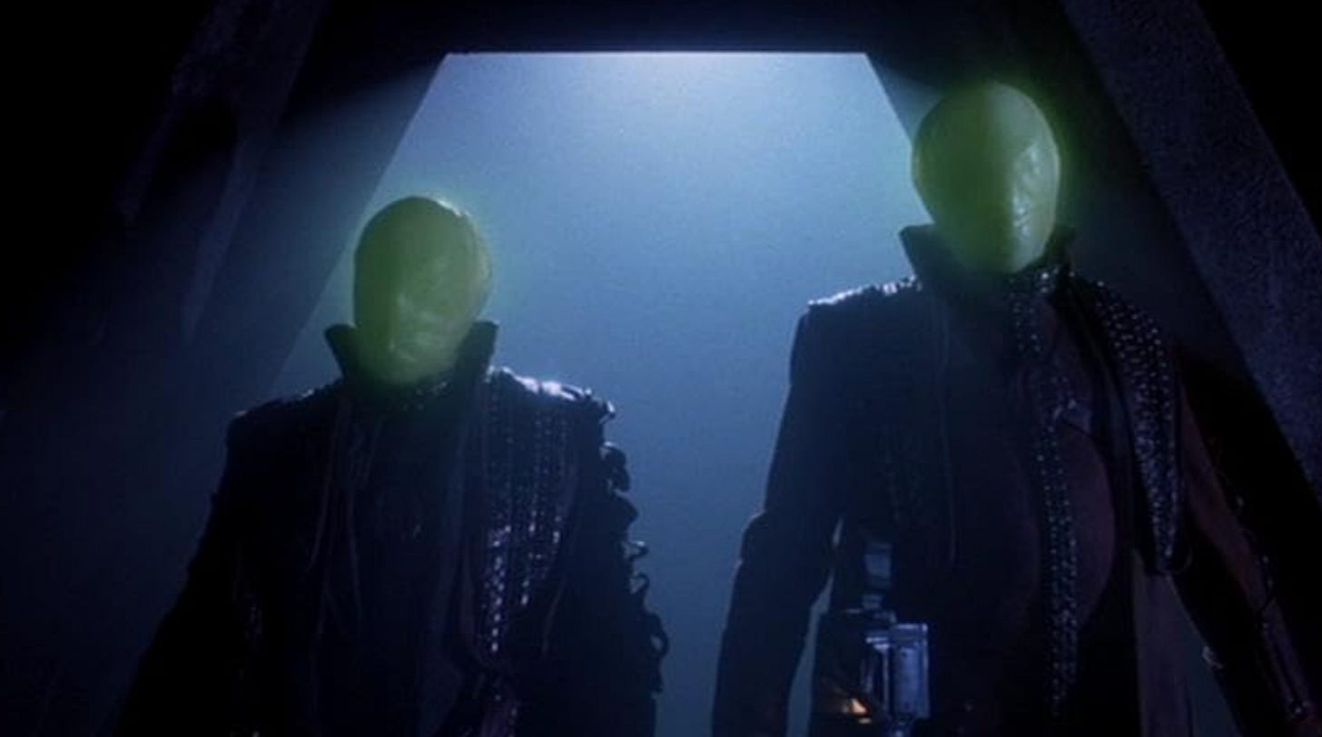 The bounty hunters in Critters add an additional layer to the to this interpretation. Faceless in their natural form, they take on the characteristics of humans they observe during their mission. One of them watches MTV on the flight to earth and adopts the visage of a hair-metal rocker, but the other waits until they land in Kansas to find his match. Over the course of the film he successively mimics various members of the community, including a sheriff’s deputy, a preacher, and the conspiratorial weirdo who predicted the arrival of aliens through the radio signals in his fillings - a regular who’s-who of the far right.