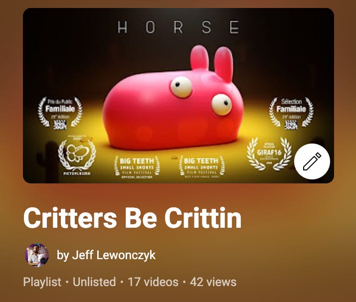 To get folks excited for the feature, Hope and I curated a pre-show playlist of short videos. We used to host events like this more frequently about a decade ago, and it got to the point where the playlists began to eclipse the film. This time we wanted to be sure they were complementary, so we carefully selected videos that featured one or more critters in some capacity.